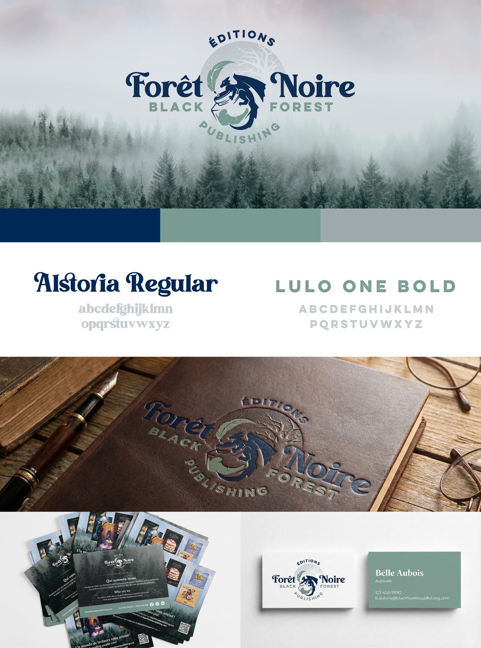 Identité pour Les éditions Forêt Noire, spécialisée dans la littérature fantastique.