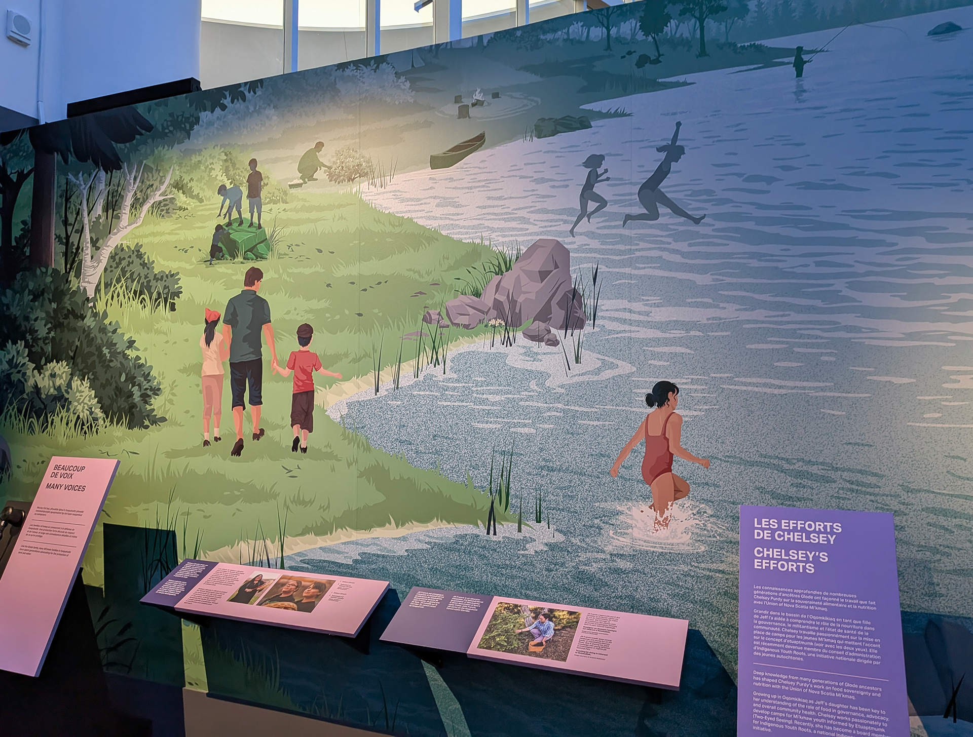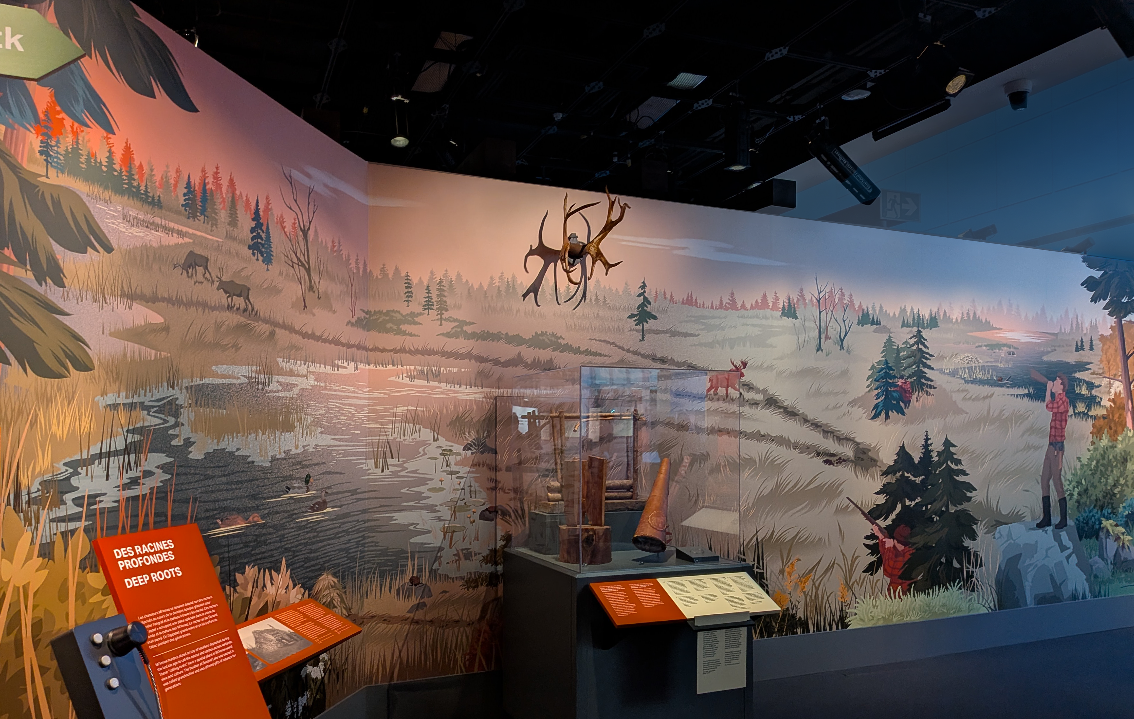 Murales pour illustrer l'exposition sur Sam Glode au Musée canadien de l'histoire